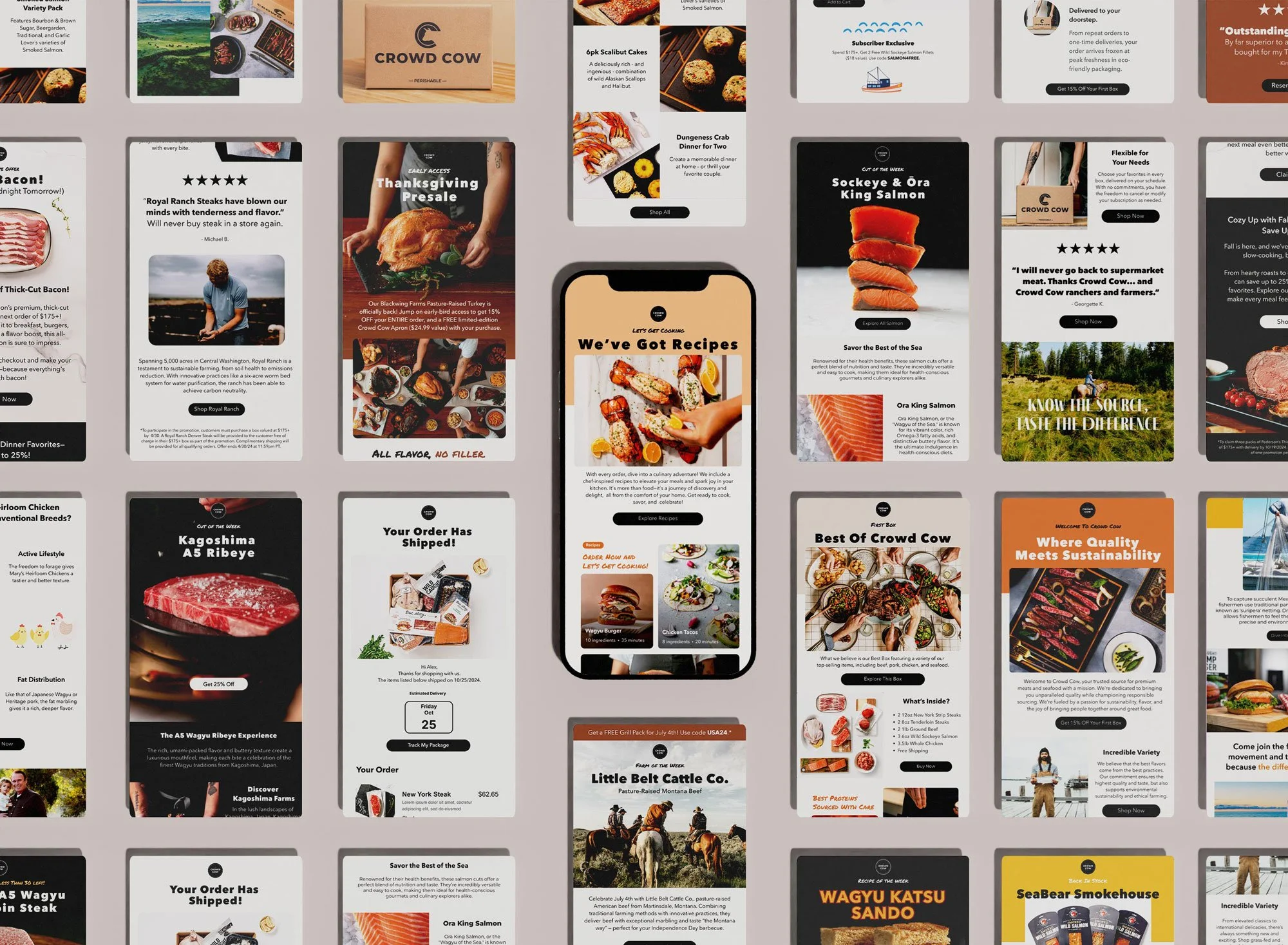 Crowd Cow’s email marketing channel needed a scalable design solution to balance consistency with creativity. The goal? Build an intuitive design system that streamlined production, empowered cross-functional teams, and elevated the brand experience—all while saving time and resources.
